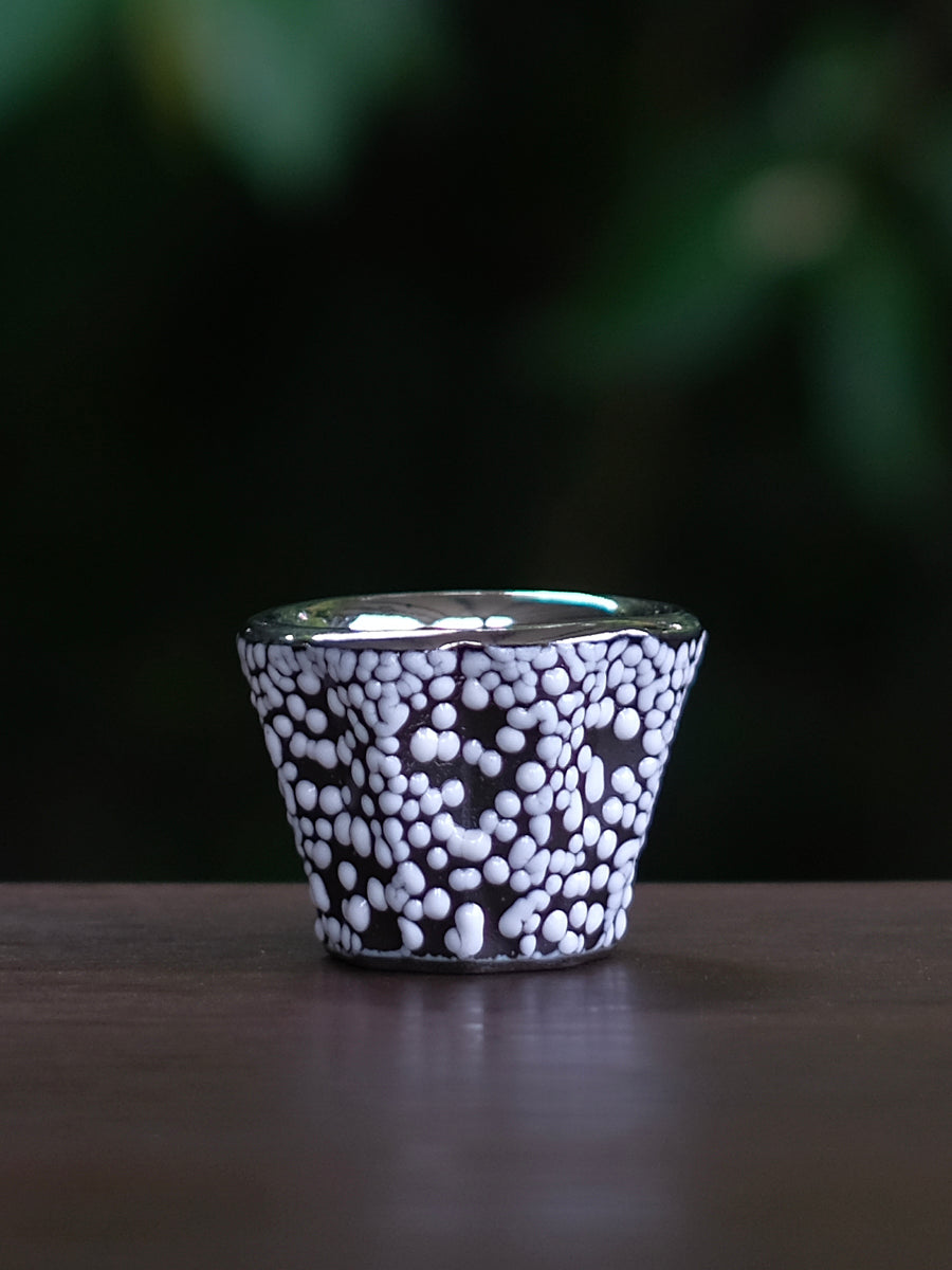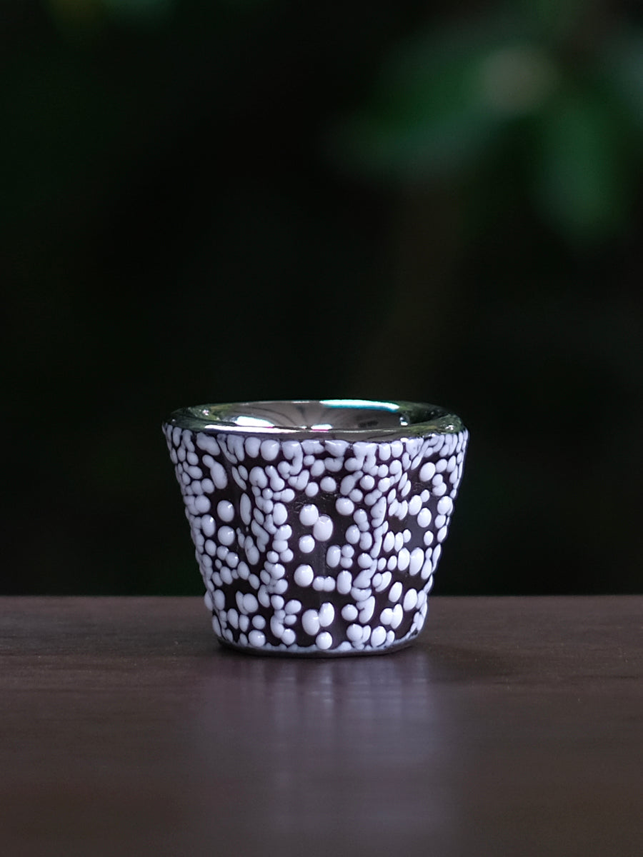 同梱の「S-presso Cup」は、今村能章氏が琉GINをイメージソースに制作した3色展開の器。代表作「Espresso Cup」をベースに、少量の蒸留酒をストレートやオンザロックで味わうために再構築されました。内側には純白金または純金を焼き付け、口当たりの滑らかさと上品な輝きを演出。常に愛用いただけるように持ち運びできる専用ケースも付属します。