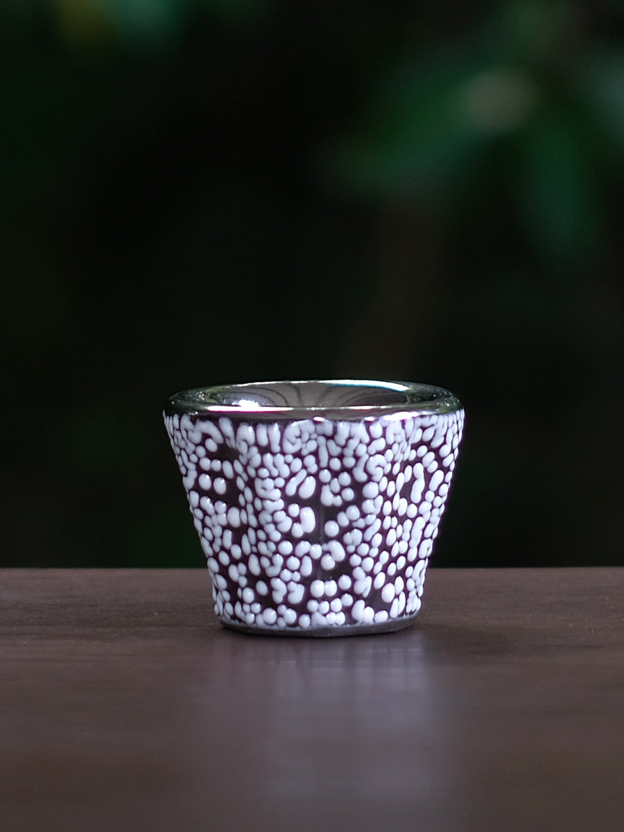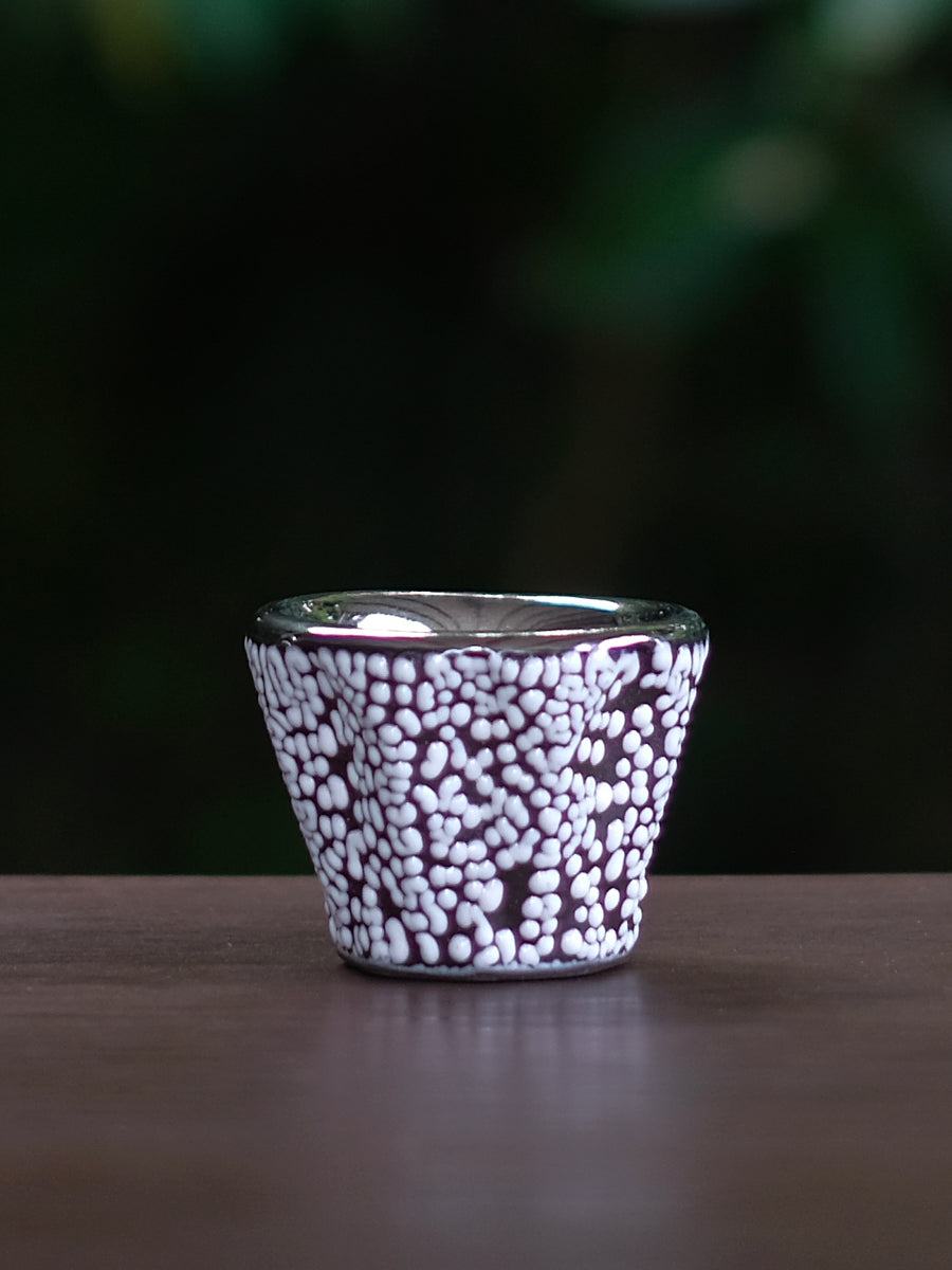 同梱の「S-presso Cup」は、今村能章氏が琉GINをイメージソースに制作した3色展開の器。代表作「Espresso Cup」をベースに、少量の蒸留酒をストレートやオンザロックで味わうために再構築されました。内側には純白金または純金を焼き付け、口当たりの滑らかさと上品な輝きを演出。常に愛用いただけるように持ち運びできる専用ケースも付属します。