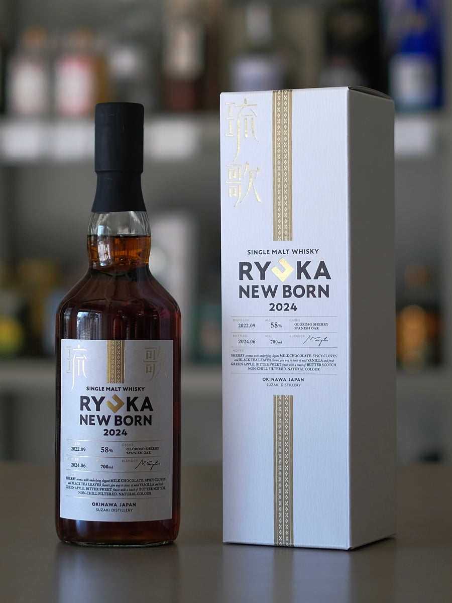 沖縄の亜熱帯気候で貯蔵した場合、貯蔵期間中に減る酒の量(エンジェルズシェア)は年間10%とかなり高いです。しかし、樽成分の抽出も早く短い熟成期間で樽感の強い酒質が造れます。この琉歌NEWBORN2024も熟成期間1年9カ月と短期間ではあるものの、長期熟成に負けない濃厚で複雑な味わいのウイスキーに仕上がっております。 シェリーを纏った上品なミルクチョコレート、スパイシークローブ、紅茶葉、穏やかなバニラ、爽やかな青りんごの香り、バタースコッチの心地よい甘味とあとを引くほろ苦さが特徴です。 優しく甘いバランスの取れた味わいをお楽しみください。(メーカー資料参考)